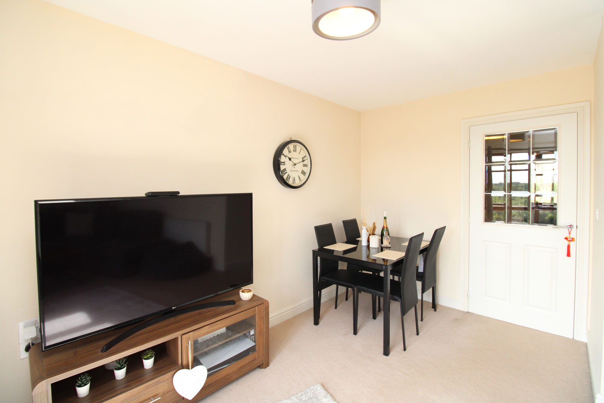LIVING ROOM/DINER About 14’1” x 12’8” Rear aspect, radiator, double glazed window, full-length double-glazed window with views over the village.