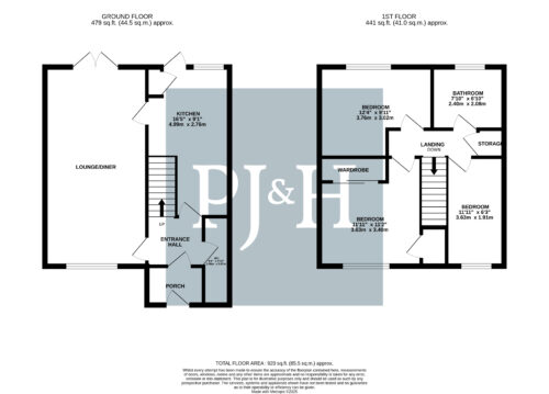 BEDROOM ONE 12’ 1” x 11’3” (including wardrobes) Front aspect with views to the west, double glazed window, radiator, built-in wardrobe with sliding doors, built-in storage cupboard.