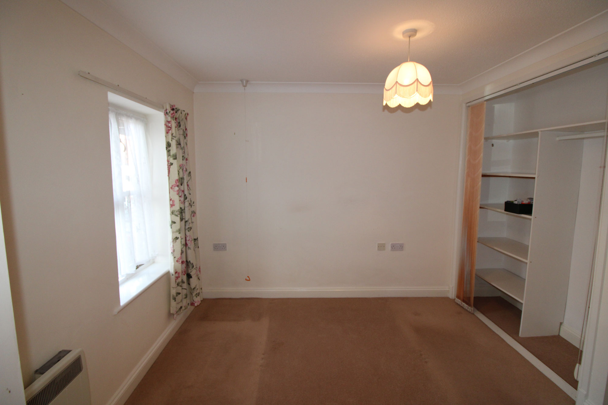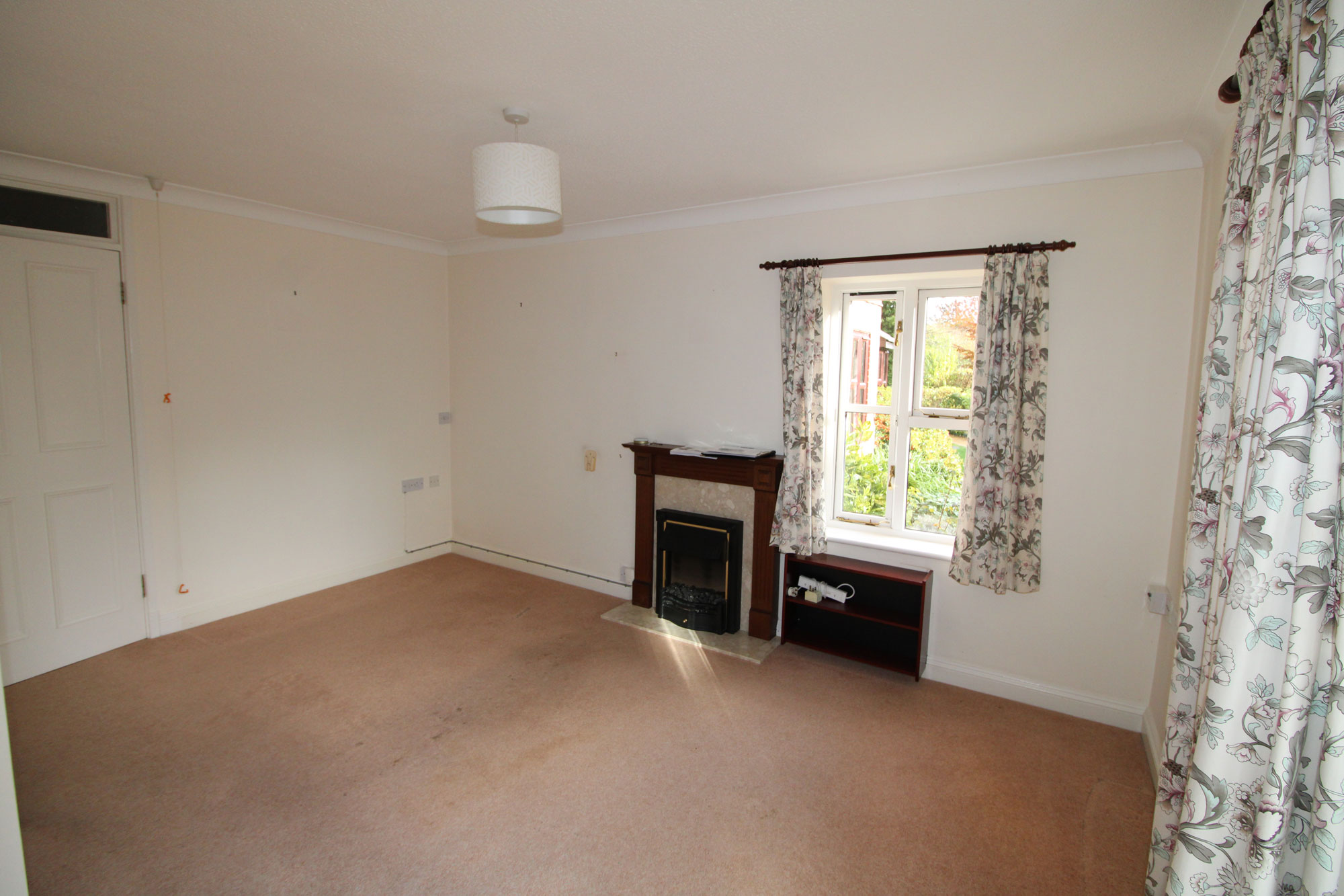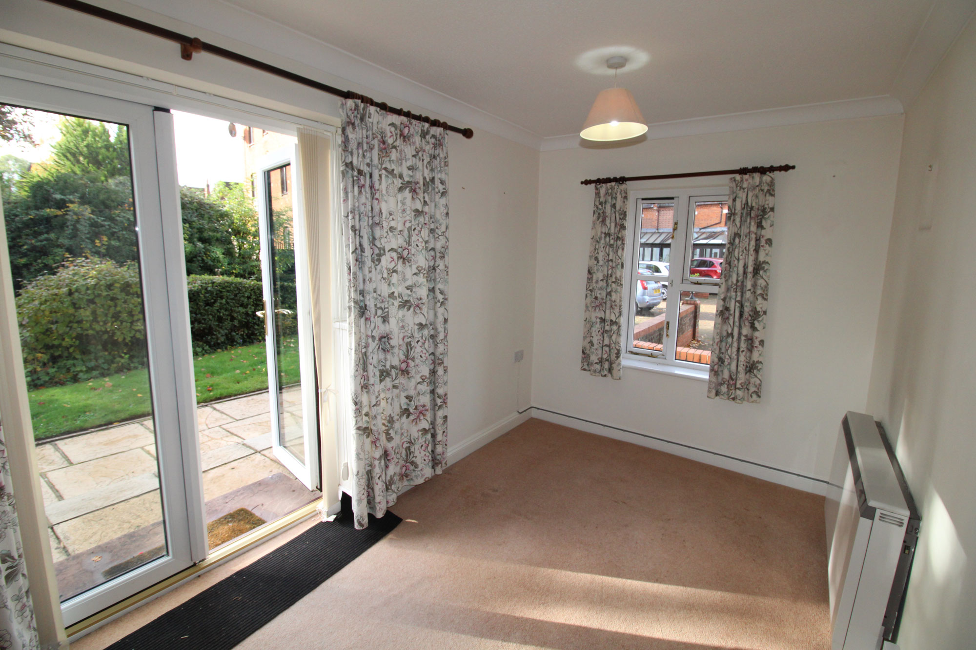 L-SHAPED LOUNGE/DINER About 16’max x 15’ max Storage heater, power points, thermal double glazed windows, electric fire with surround, UPVC double glazed French doors offering access to the communal gardens.