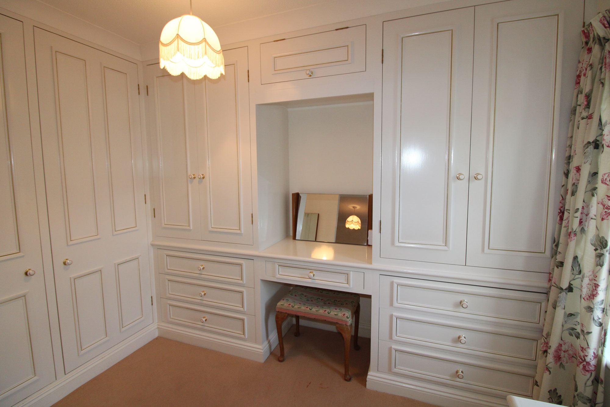 DRESSING AREA About 8’ x 6’ A range of matching double and single wardrobes and drawer units, thermal double glazed window.